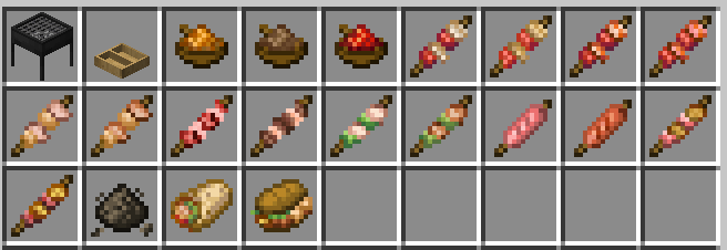 This is a mod that expands on the barbecue content in Farmer's Delight by adding a variety of skewers, seasonings, and blocks for making them!