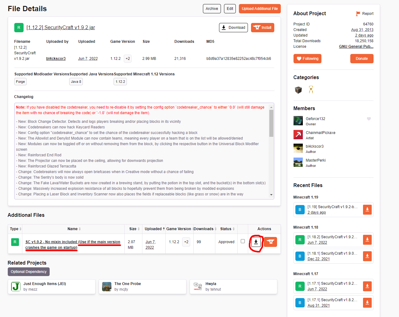 | LC | securitycraft | v1.9.2 | [1.12.2]+SecurityCraft+v1.9.2.jar | None |