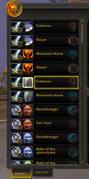 - Summaries for "Mythic+" or "Solo PvP". Your characters class and specialization is preselected and appear at top of the list. Other sections of this AddOn are adapted as soon as you select another class/specialization/hero combination.